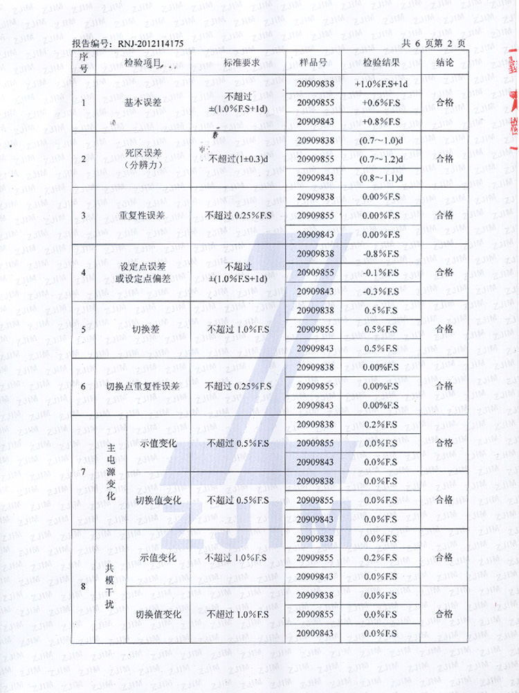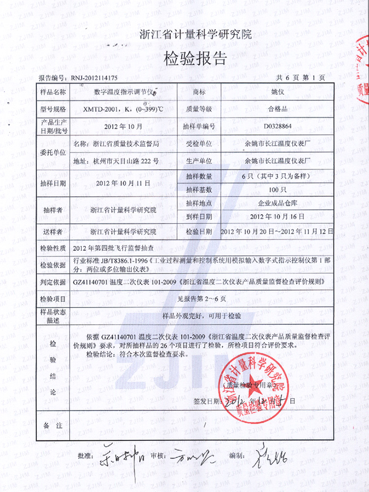 2014年省檢報(bào)告(工業(yè)熱電偶)
